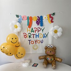 올리브파티 데이지 풍선 펠트 가랜드 모자 안경 생일파티 용품 세트 홈파티, 옐로우