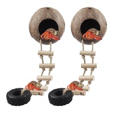NANEEZOO 소라게 코코넛 껍질 오두막 사다리가 있는 표범 게코 은신처 걸이용 고리와 흡착 컵이 있는 파충류 동굴 서식지 소라게 도마뱀 게코용 테라리움 장식 2 131