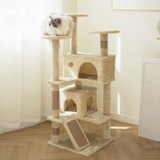 GP 6단 터널 숨숨집 플랫폼 고양이 중형 캣타워 138cm, 베이지, 1개