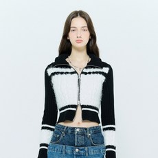 배색 디자인으로 여성스럽고 활기찬 스타일을 연출하는 니트 집업