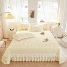 싱글 사이즈에 맞게 설계된, 고급스러운 레이스와 풍부한 주름이 특징적인 우아한 스커트 형태의 침대커버