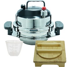 5분 바로 밥 누룽지 가마솥 손잡이형 + 나무 세트 + 계량컵, 0.8L, 은색, 검정색, 1세트