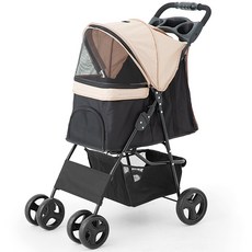 탐사 반려동물 베이직 원터치 폴딩 유모차, 블랙 + 베이지