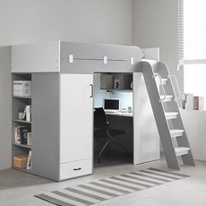 벙커형책상 침대 세트 공간활용 2층 기숙사 베드 원룸, 0.9미터폭의아파트침대800폭옷장회색
