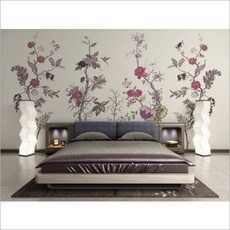 오리엔탈페인팅 꽃포인트벽지 꽃뮤럴벽지 꽃벽지 꽃디자인벽지, 프리미엄실크벽지/J 404304