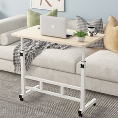 오브민 높이조절 사이드 쇼파 침대 이동식 노트북 테이블, 우드