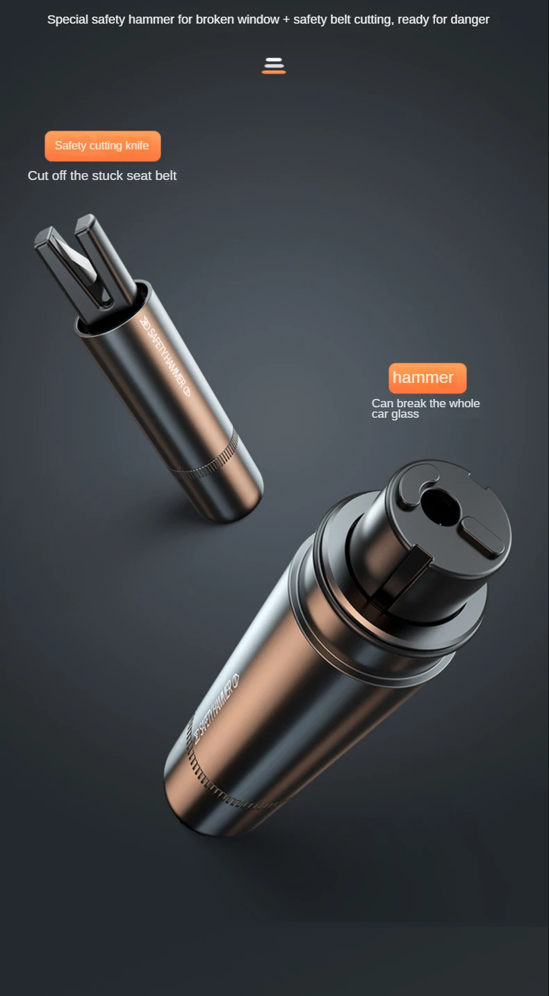 4. 숨겨진 디자인, 내장된 스테인레스 스틸 커터는 중요한 순간에 안전 벨트를 신속하게 절단할 수 있으며 U 자형 숨겨진 칼날 디자인입니다.손가락이 깊이 들어갈 수 없고, 손이 다치지 않도록 안전하며, 긁힘에 주의하세요.
