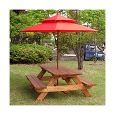 착한테이블 야외 원목 테이블 야외 테이블 야외용테이블 세트 테라스 파라솔 별매, 일체형 도토리색 8인용