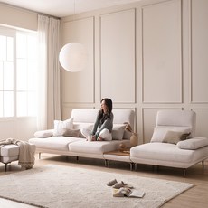 이터널니즈 아리아 조야원단 4인용 카우치 아쿠아텍스 패브릭 스윙소파, 앉았을때 우측형, 고이스 추가, 올 아이보리