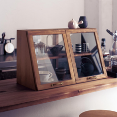 앤틱한 원목 소재로 빈티지 분위기를 풍기는 카페나 주방에 적합한 미닫이 찬장