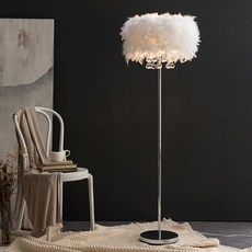 깃털 장 스탠드 인테리어 조명 실내조명, 깃털 장 스탠드 펄, LED 볼구 8W 주광색